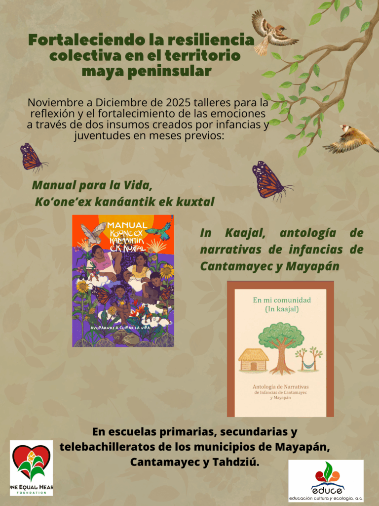 En esta ocasión les compartimos que continuamos con el compromiso de fortalecer el tejido social y cultural en las comunidades mayas del territorio peninsular; ahora con la oportunidad de un nuevo proyecto titulado “Fortaleciendo la resiliencia colectiva en el territorio maya peninsular”, con el objetivo de acompañar a infancias y juventudes en la construcción de una vida digna, libre de influencias negativas y desde el reconocimiento de su identidad cultural.
